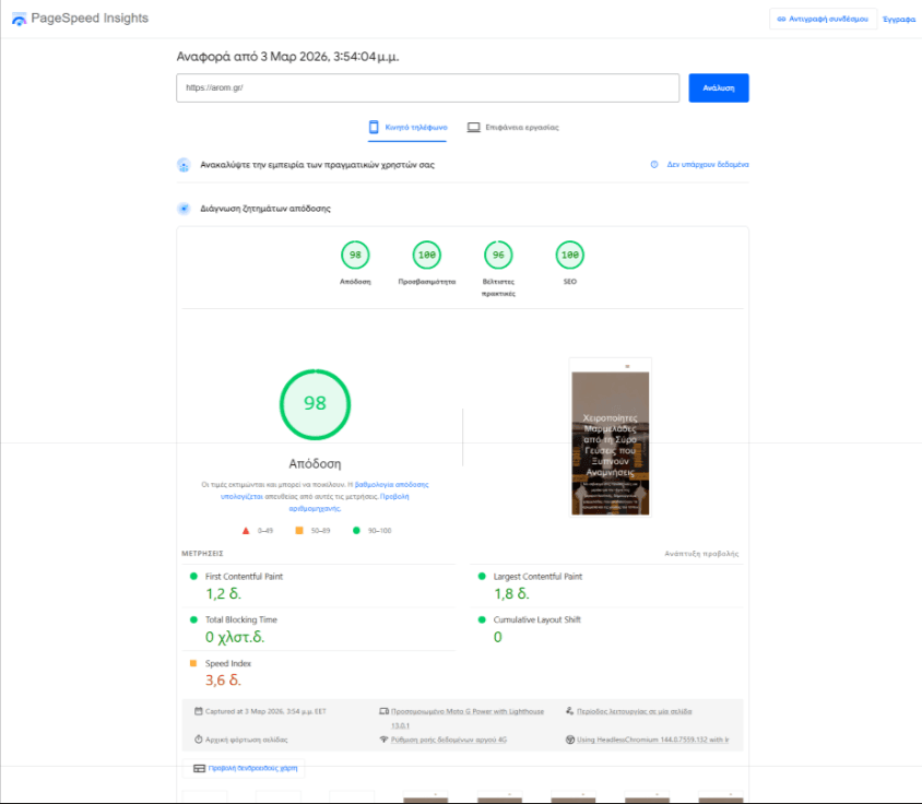 Το project ολοκληρώθηκε με φωτογραφική επιμέλεια, δημιουργία γραφικών στοιχείων branding και τεχνική βελτιστοποίηση ταχύτητας και responsive σχεδιασμό, διασφαλίζοντας άριστη απόδοση σε όλες τις συσκευές.