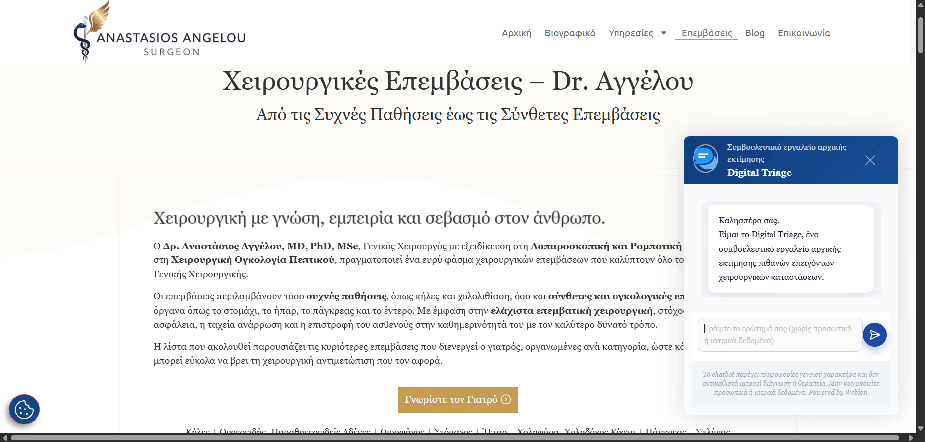 Medical Website με Ενσωμάτωση AI Agent για Άμεση Υποστήριξη