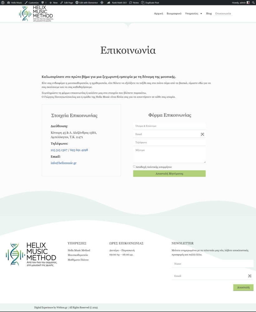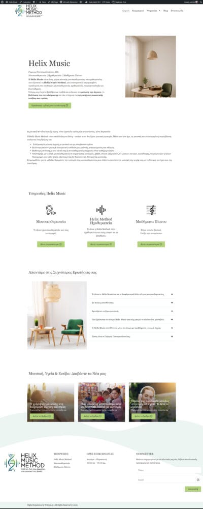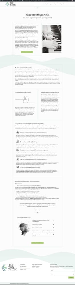 Κατασκευή ιστοσελίδας & παρουσίαση της μεθόδου Helix Music: μια ολιστική, επιστημονικά τεκμηριωμένη προσέγγιση θεραπείας μέσω μουσικής & ήχου, μαζί με μαθήματα πιάνου.